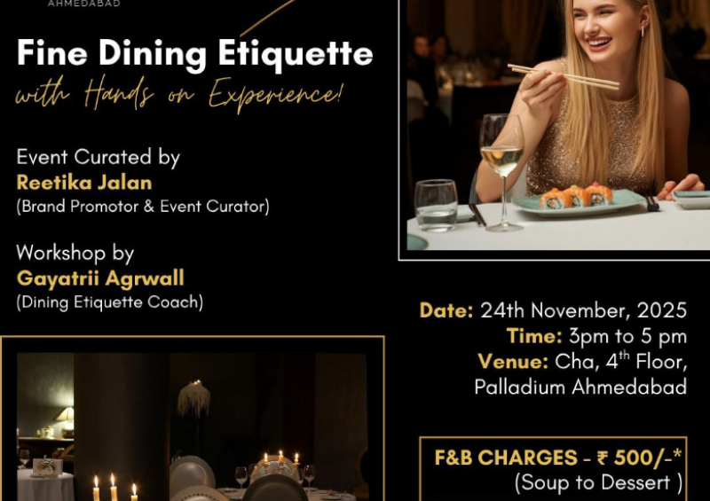 Ahmedabad based Soft Skills Trainer Gayatri Agarwal conducted a "Fine Dining Etiquette Workshop" For Women in collaboration with Palladium Ahmedabad.